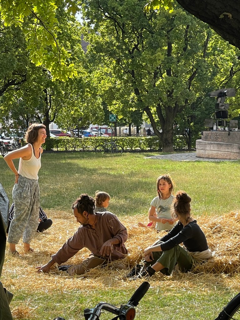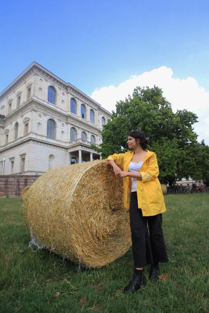 Zyklus darstellen, werden Strohballen auf der Wiese vor der Akademie der Bildenden Künste in München aufgestellt. Das beabsichtigte Bild zielt darauf ab, unsere Art und Weise, diese beiden Ökonomien wahrzunehmen, in Frage zu stellen, wobei sich die eine mit Überschuss und die andere mit Knappheit befasst. Ich ernte, du erntest, wir ernten zieht klar die Grenze oder weist auf das sozioökonomische kulturelle Paradox oder den Bruch hin, der beim Vergleich Münchens mit seiner Umgebung auffällt, ohne dabei die gemeinschaftliche Verantwortung zu vergessen, einen möglichen Bruch und eine Lücke zu heilen oder zu schließen. Die Arbeit bietet einem Publikum jeden Alters einen Raum zum experimentieren und interagieren mit dem Material und bietet eine außergewöhnliche visuelle und skulpturale Präsenz in der „Stadt“.