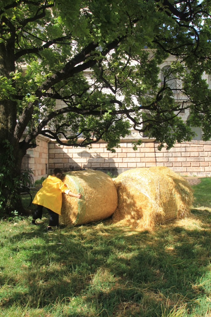 Symbols of labor, representing an end of a particular action and a beginning of a new cycle, hay bales shall be installed on the frontal lawn. The Image intended is aiming to challenge our ways of perceiving these two economies, one that deals with excess and the other that deals with scarcity.